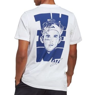 Stand out anywhere you are in the hype graphic designs of the adidas Graphic line. The Thiem graphic tee has an adidas DT logo on the front and a Thiem graphic portrait on the back. Made from recycled materials and ethically sourced cotton.